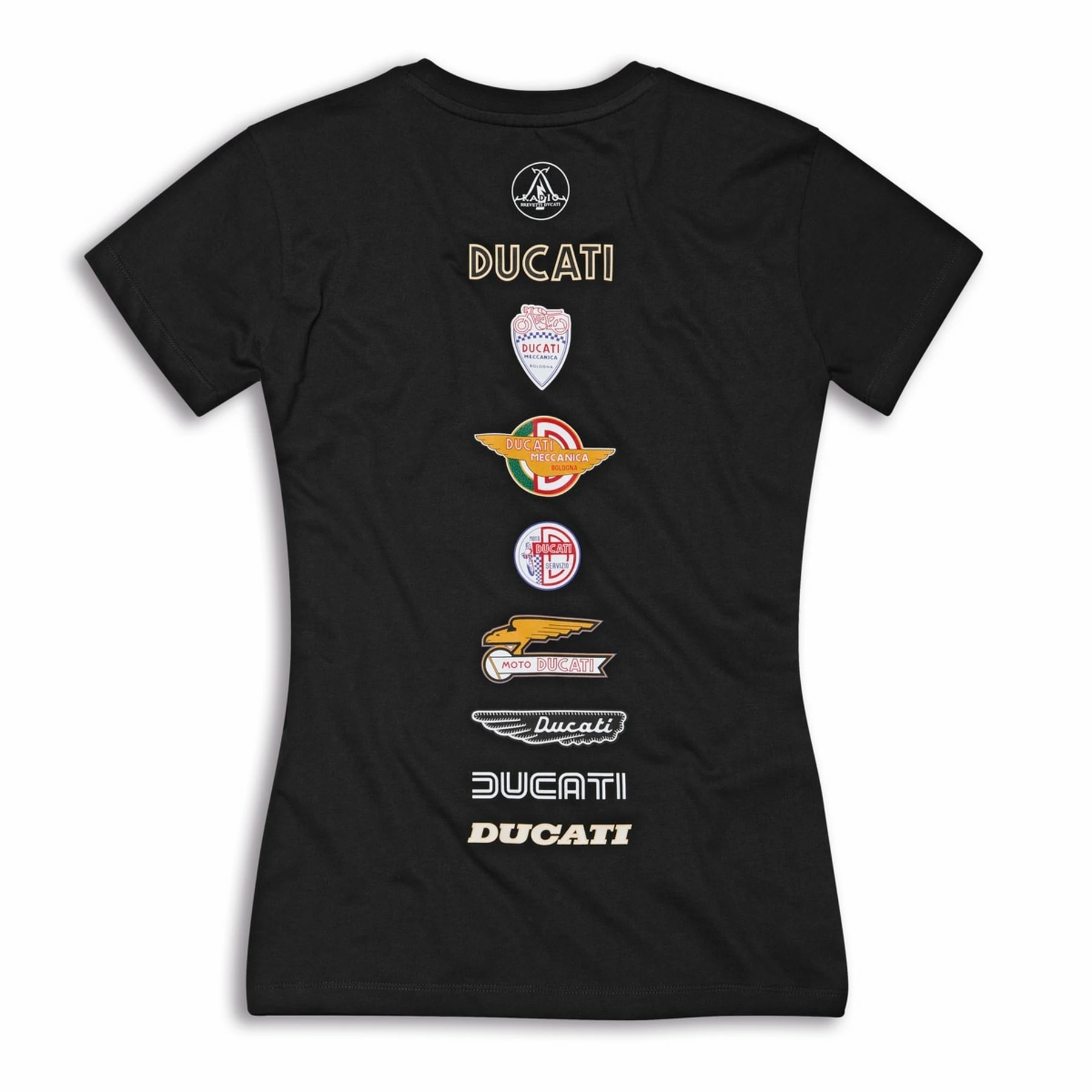Gefertigt aus 100 % dicker, fester Baumwolle, bietet das T-Shirt eine hervorragende Atmungsaktivität, Strapazierfähigkeit und hohen Tragekomfort – ideal für den Alltag. Das besondere Highlight ist der Rückenprint mit einer Auswahl historischer Ducati Logos, der die Entwicklung der Marke von ihren Anfängen bis heute visuell erzählt.
