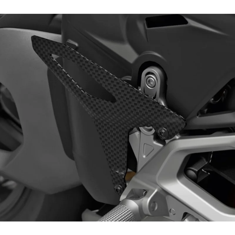 Der Ducati Fersenschutz aus Carbon (Art.-Nr. 96982221AA) wird direkt an den originalen OEM-Fußrasten montiert und reduziert effektiv den Kontakt zwischen Motorrad und Fahrerstiefeln. Dadurch werden sowohl Stiefel als auch Motorradteile geschont und der Bewegungsfreiraum optimiert.